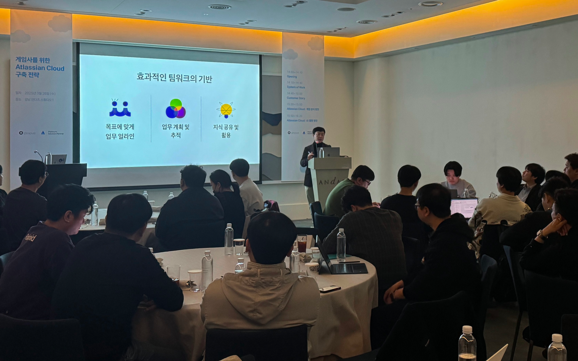 이번 세미나는 국내 게임사들을 대상으로 ▲게임 산업에 최적화된 아틀라시안 클라우드 도입 전략 ▲AI를 활용한 협업 환경 개선 ▲클라우드 환경 내 조직 보안성 확보 방안 등을 전달하는 다양한 세션이 진행됐다. 또한, 디무브 고객사인 국내 메이저 게임사의 실무자가 직접 발표자로 나서, 마이그레이션 성공 사례와 경험을 공유했다.
